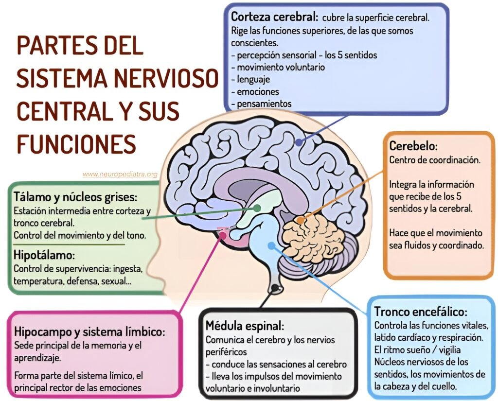 - Funciones: Esta categoría incluye información sobre las funciones del cerebro, como el control del movimiento, la percepción del mundo, el pensamiento y el razonamiento, y la emoción.