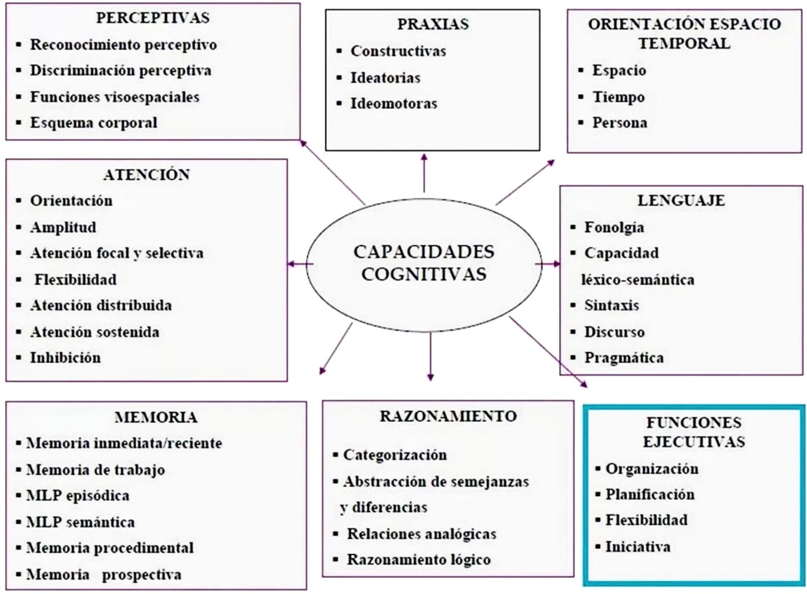 Las capacidades cognitivas son aquellas que se refieren a lo relacionado con el procesamiento de la información, esto es la atención, percepciónPercepción. Función psíquica que permite al organismo, a través de los sentidos, recibir y elaborar las informaciones provenientes del exterior y convertirlas en totalidades organizadas y dotadas de significado para el sujeto. La percepción es la manera en la que el cerebro de un organismo interpreta los estímulos sensoriales que recibe a través de los sentidos para formar una impresión consciente de la realidad física de su entorno.1 También describe el conjunto de procesos mentales mediante el cual una persona selecciona, organiza e interpreta la información proveniente de estímulos, pensamientos y sentimientos, a partir de su experiencia previa, de manera lógica o significativa.2 En la filosofía, la percepción es la aprehensión psíquica de una realidad objetiva, distinta de la sensación y de la idea, y de carácter mediato o inmediato según la corriente filosófica (idealista o realista). Historia Los primeros estudios científicos sobre percepción no comenzaron sino hasta el siglo XIX.[cita requerida] Con el desarrollo de la fisiología, se produjo el primer modelo que relacionaba la magnitud de un estímulo físico con la magnitud del evento percibido, a partir de..., memoriaLa memoria tiene la facultad de almacenar ideas, emociones y traer al consciente lo que uno quiere recordar. Puedo, después de un impacto emocional, ocultar en mi memoria miedos, temores, pena. Es el subconsciente que niega el recuerdo al consciente. Para mí es un modo incluso inconsciente de huir una forma de realidad que hallaría difícil de vivir. Acepto tomar plenamente la responsabilidad de mi vida, tomando consciencia de que cada situación está aquí para ayudarme a conocerme mejor y a sentirme más libre. La memoria es una función del cerebro que permite al organismo codificar, almacenar y recuperar la información del pasado. Surge como resultado de las conexiones sinápticas repetitivas entre las neuronas, lo que crea redes neuronales (la llamada potenciación a largo plazo). La memoria permite retener experiencias pasadas y, según el alcance temporal, se clasifica convencionalmente en: memoria a corto plazo (consecuencia de la simple excitación de la sinapsis para reforzarla o sensibilizarla transitoriamente), memoria a mediano plazo y memoria a largo plazo (consecuencia de un reforzamiento permanente de la sinapsis gracias a la activación de ciertos genes y..., resolución de problemasLa resolución de problemas es la fase que supone la conclusión de un proceso más amplio que tiene como pasos previos la identificación del problema y su modelado. Por problema se entiende un asunto del que se espera una solución que dista de ser obvia a partir del planteamiento inicial. El matemático G. H. lo definió de forma ingeniosa: «La resolución de problemas es lo que haces cuando no sabes qué hacer». La resolución de problemas reside principalmente en dos áreas: la resolución de problemas matemáticos y la resolución de problemas personales —en los que se presenta algún tipo de obstáculo a su resolución—, mientras que los fundamentos son estudiados en psicología del pensamiento, ciencia cognitiva y teoría de la decisión. Utilidad de la Resolución El término «resolución de problemas» se utiliza en muchas disciplinas, a veces con diferentes puntos de vista, a menudo con diferentes terminologías. Por ejemplo, se trata de un proceso mental en psicología, un proceso computarizado en informática, y un proceso de trabajo en negocios. Los problemas, normalmente abordados por la ciencia, también se pueden clasificar en dos tipos diferentes para su resolución: • Problemas mal o poco..., comprensiónActo de comprender, que quiere decir a su vez abarcar, rodear, circunscribir algo. En Matemática se dice que un conjunto se define por comprensión, cuando se mencionan las características comunes de sus elementos, sin nombrarlos uno por uno. El caso opuesto es por extensión. Por ejemplo, un conjunto está definido por comprensión cuando se dice que está integrado por los hijos del matrimonio del Sr. Juan Pérez y de la Sra. Rosa Fernández, y está definido por extensión cuando se diga que lo integran Marta, Josefina, Enrique, y Lucas Pérez Fernández. En la lógica aristotélica los conceptos pueden definirse por extensión o por comprensión. En el primer caso el concepto abarca todos los seres que tengan la misma cualidad. Por ejemplo el concepto de animal es extensivo a todos aquellos que reúnan las cualidades propias de los animales. En el segundo es el conjunto de cualidades que caracterizan al objeto del concepto, y sin los cuales no sería lo que es. En el mismo caso del concepto de animal, serían sus atributos esenciales, como los de ser vivo, con movilidad,..., establecimientos de analogíasEl silogismo o analogía es una forma de razonamiento deductivo que consta de dos proposiciones como premisas y otra como conclusión, siendo la última una inferencia necesariamente deductiva de las otras dos. Fue formulado por primera vez por Aristóteles, en su obra lógica recopilada como El Organon, de sus libros conocidos como Primeros Analíticos, (en griego Proto Analytika, en latín –idioma en el que se reconoció la obra en Europa Occidental-, Analytica Priora). Aristóteles consideraba la lógica como lógica de relación de términos. Los términos se unen o separan en los juicios. Los juicios aristotélicos son considerados desde el punto de vista de unión o separación de dos términos, un sujeto y un predicado. Hoy se hablaría de proposición. La diferencia entre juicio y proposición es importante. La proposición afirma un hecho como un todo, que es o no es, como contenido lógico del conocimiento. El juicio, en cambio, atribuye un predicado a un sujeto lógico del conocimiento otorgando a los 
