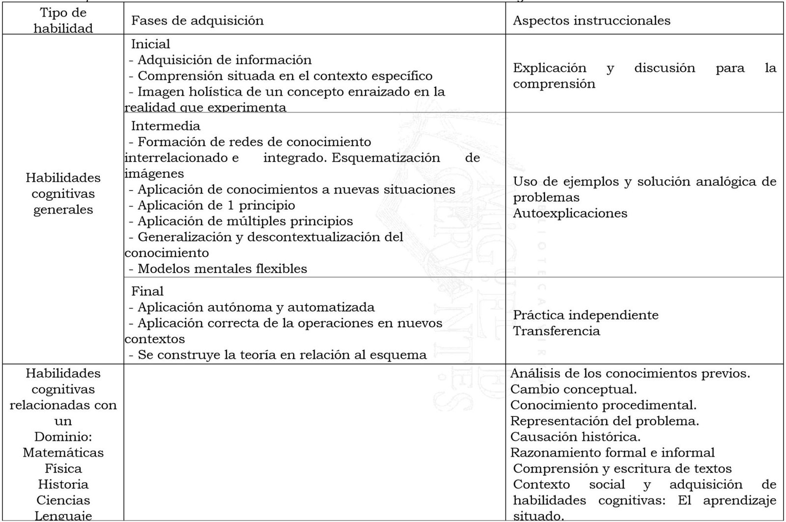 Adquisición de habilidades cognitivas relacionadas con un dominio de contenido