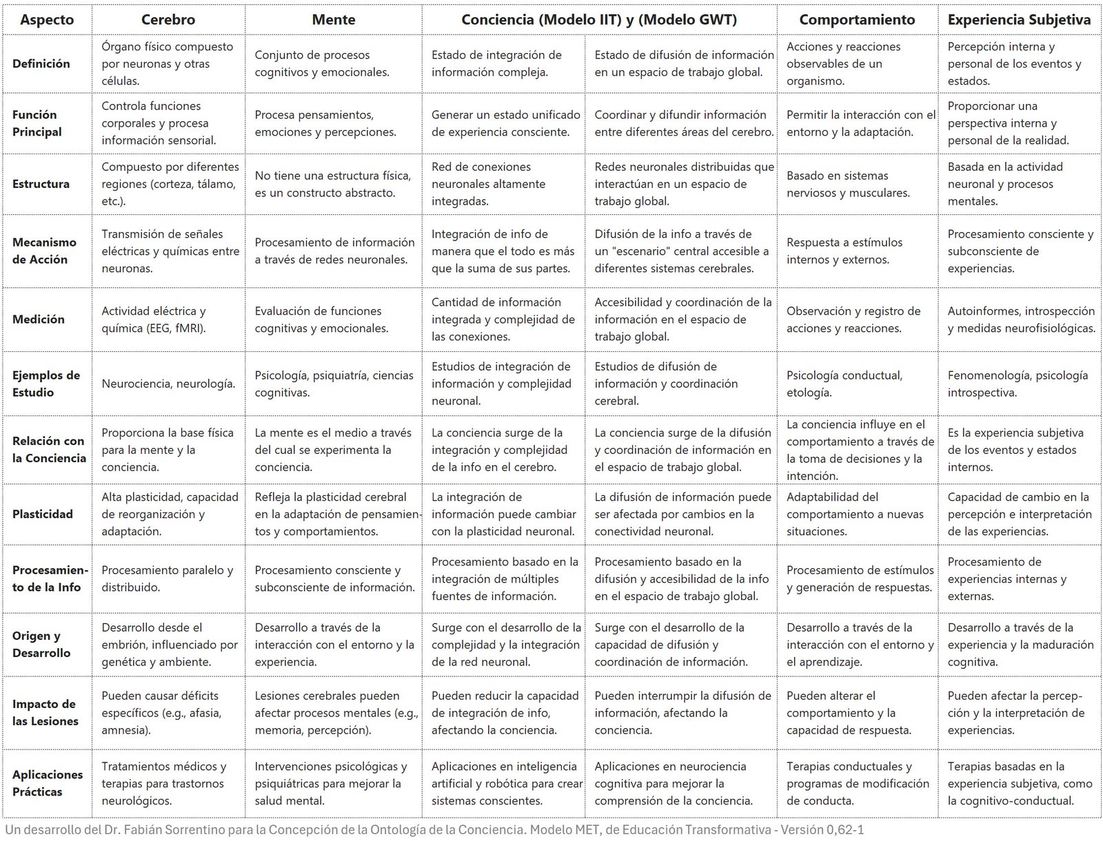 Un desarrollo del Dr. Fabián Sorrentino para la concepción de la Ontología de la Conciencia. Modelo MET, de Educación Transformativa – Versión 0,62-1