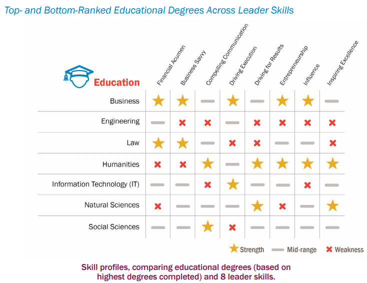 Los graduados de Humanidades muestran mejores habilidades de liderazgo en varias áreas clave que aquellos con un grado en ciencias empresariales, según un estudio de una consultoría de liderazgo mundial.