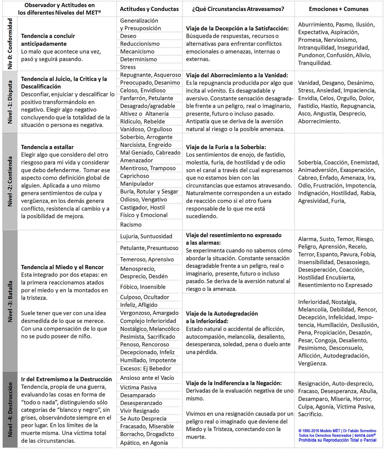 Durante los niveles negativos las actitudes y conductasEs la manera de proceder que tienen las personas u organismos, en relación con su entorno o mundo de estímulos. El comportamiento puede ser consciente o inconsciente, voluntario o involuntario, público o privado, según las circunstancias que lo afecten. La ciencia que estudia la conducta y el comportamiento animal es la etología y la ciencia que estudia la conducta desde el punto de vista de la evolución es la ecología del comportamiento. La ciencia que estudia la conducta humana es la psicología. Puede consultar Wikipedia para una mayor información sobre este concepto. A continuación veamos un aporte de Francisco Javier Menéndez Balaña titulado: El desarrollo de la conducta. La involución de la conducta El camino para que el hombre, como individuo, llegue a la plenitud psíquica es complejo y refleja, de algún modo, el camino de la evolución de las especies. A este camino evolutivo se le conoce con el nombre de ontogenia, o desarrollo del ser viviente desde su inicio hasta su estado adulto. Por otro lado, el estudio de la ontogenia del comportamiento sirve para marcar el decurso del proceso de individualización que... son sumamente disfuncionales, es por eso que la escucha termina siendo ignorada. Veamos a continuación que es lo que observamosLa Observación es la técnica de recogida de la información que consiste básicamente, en observar, acumular e interpretar las actuaciones, comportamientos y hechos de las personas o objetos, tal y como las realizan habitualmente. En este proceso se busca contemplar en forma cuidadosa y sistemática como se desarrolla dichas características en un contexto determinado, sin intervenir sobre ellas o manipularlas. También se conoce como observación a la nota escrita que explica, aclara o corrige un dato, error o información que puede confundir o hacer dudar. Por lo general, esta aclaratoria se encuentra en libros, textos o escritos. En el acto de observación se pueden distinguir: el observador, el objeto de observación, los medios para observar, las condiciones de la observación y, el sistema de conocimientos relacionados con la finalidad de las observaciones y las interpretaciones que resulten de ella. La observación es la técnica más antigua y la más empleada en investigación, es el proceso inicial y fundamental del método científico. La observación científica consiste en el estudio de un fenómeno específico o un acontecimiento determinado que se produce en... como importanteEste atributo se asocia a ocupar un rol de relevancia social, a través del cual se supone que esa persona le importa a muchos o a todos. Eso surge de que esas personas poseen recursos o atribuciones que pueden afectar mi vida para bien o para mal. Pero existen las personas importantes a menor escala, que influyen en nuestras vidas en espacios menores. Importar emocionalmente significa que las acciones del otro o sus emociones hacia mí impactan mi mundo emocional. Significa que su ausencia me produce un pesar. La jerarquización es una acción o práctica común que se lleva a cabo en varios campos, áreas, materias, entre otros, y que consiste en organizarlos o clasificarlos en distintos niveles de importancia. Comprende el proceso por el cual se diseña un sistema basado en algún tipo de escalafón. La jerarquía es la organización a través de categorías que presentan diversa importancia y que por ende le atribuyen a las personas o cosas jerarquizadas diferente relevancia y valores. El clero, el ejército o la empresa tradicional son ejemplos de este modelo. En este... en esos estadíos de conciencia y por qué emociones quedamos travesados: