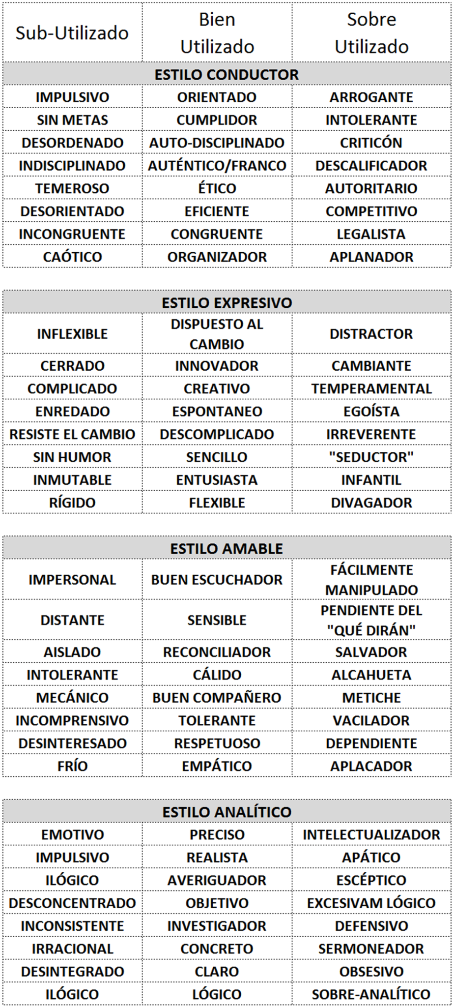 En el entrenamiento de Estilos Sociales se reflejan patrones de comportamiento observables, que van mucho más allá de la personalidad, toman en cuenta aspectos como valores, ideas, sueños, motivaciones, experiencia, actitudes, etc.