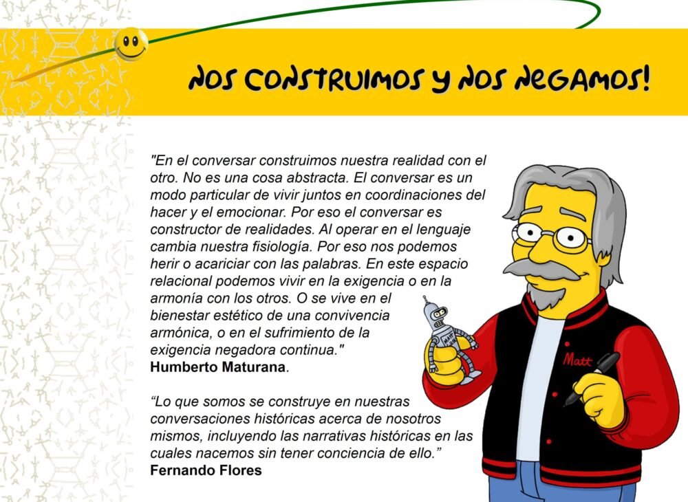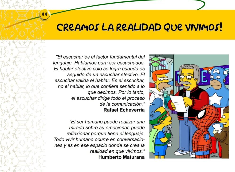 - JohnNacido el 10 de enero de 1940, es un anglicista y lingüista estadounidense conocido principalmente por ser el cofundador, junto a Richard Bandler, de la técnica denominada programación neurolingüística. Grinder realizó trabajos como estudiante en las gramáticas generativas transformacionales de Noam Chomsky más tarde y ya siendo docente el la Universidad de California en Santa Cruz conoció al entonces estudiante de psicología Richard Bandler e iniciaron el trabajo intelectual conjunto, primeramente a través de una intervisión (mutua supervisión, u observación) de las sesiones grupales de terapia gestáltica que dirigían. Ambos cambiaron de Universidad, trasladándose a San Francisco por la misma época. Creadores y Autores de la programación neurolinguistica que es el proceso de programar la información del lenguaje. A principios de los 60 Grinder se gradúa en Psicología en la Universidad de San Francisco, poco después ingresa en las fuerzas armadas de los Estados Unidos. Durante la Guerra Fría sirve como capitán en Europa en las fuerzas especiales de donde pasa aparentemente a la agencia de inteligencia americana. A finales de los 60 vuelve a la universidad doctorándose en lingüística... SearleJohn Rogers Searle (nacido el 31 de julio de 1932, Denver, Colorado) es Slusser Professor de Filosofía en la Universidad de California, Berkeley, y es célebre por sus contribuciones a la filosofía del lenguaje, a la filosofía de la mente y de la conciencia, a las características de las realidades sociales frente a las realidades físicas, y al razonamiento práctico. Le fue concedido el premio Jean Nicod en 2000 y es miembro de la Academia Europea de Ciencias y Artes. Aparte de su actividad académica, el profesor Searle fue también el primer profesor en ejercicio en unirse al Free Speech Movement en la Universidad de Berkeley. Searle estudió en la Universidad de Oxford gracias a una beca Rhodes. John Searle es muy conocido por el desarrollo de un experimento mental llamado el argumento del "habitación china". Lo creó para demostrar que el pensamiento humano no se compone de simples procesos computacionales. Participó en el congreso internacional sobre el diálogo ciencia-fe, celebrado en el Vaticano el año 2000, como parte del Jubileo de los Científicos. Las primeras obras de Searle continuaron..., Fernando FloresCarlos Fernando Flores Labra es un político e ingeniero civil chileno, ex ministro de estado de la Unidad Popular y actual Senador de la República de Chile. Como miembro del Senado, ha integrado las comisiones de Economía, de Defensa; y de Ciencia, Tecnología e Innovación. Es vicepresidente de la Fundación País Digital, además de fundador de la Fundación Mercator y del Colegio Altamira (del que también es Presidente). Estudió en el Liceo Blanco Encalada, de Talca, y en la Facultad de Ingeniería de la Universidad Católica, donde se tituló de Ingeniero Civil Industrial, en 1968. Posteriormente obtuvo un doctorado en Lenguaje de la Universidad de Berkeley, EE.UU y también ha recibido la distinción Doctor Honoris Causa de la Universidad de Tarapacá y de la Universidad de Santiago de Chile. En 1970 fue nombrado Director Técnico General de la Corporación de Fomento de la Producción (CORFO), simultáneamente fue Director del Banco Interamericano y Presidente del Instituto Tecnológico de Chile. El mundo empresarial, el mundo político, el mundo cultural, me parecen absolutamente ligados. Todos participan de alguna manera en lo que llamo... y Rafaél Echeverría Actos del Habla (1969) – Ontología del Lenguaje (1994)