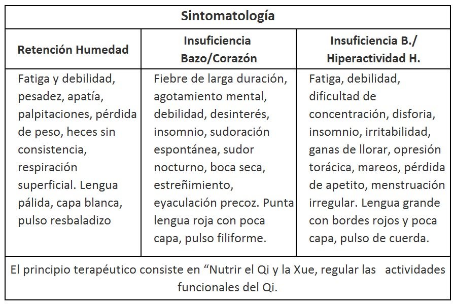 ⃞ Retención de Humedad causada por una insuficiencia de Qi