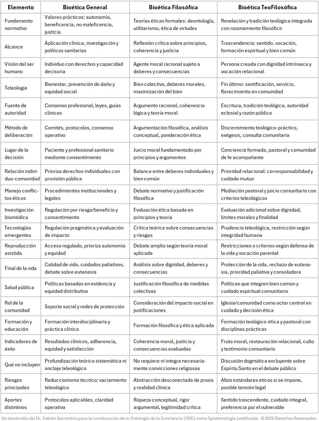 Al fusionar la Ontología de la Conciencia con los principios teofilosóficos, se establece una bioética que no sólo regula actos biomédicos, sino que lo cultiva desde el —cuerpo, la mente y el espíritu— orientando toda praxis sanitaria hacia la realización plena del sujeto en su destino trascendente.