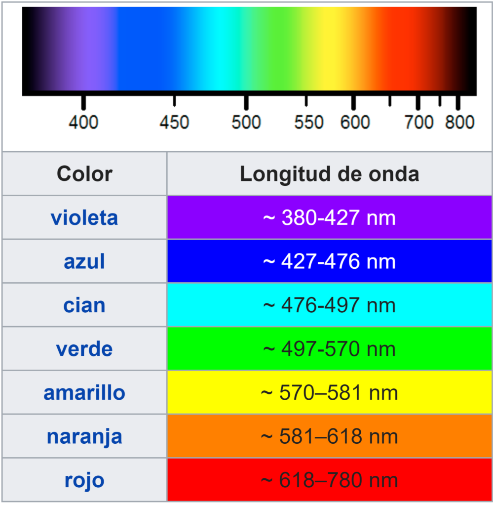 Por tanto, del Espectro visible, que es la parte del espectro electromagnético de la luz solar que podemos notar, cada longitud de onda es percibida en el cerebro como un color diferente.