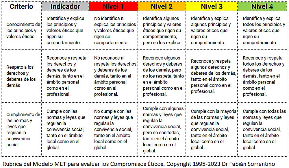 Una forma de evaluar el compromiso ético como competencia es mediante una rúbrica, que es una herramienta que permite describir y valorar los criterios, indicadores y niveles de desempeño que se esperan de una persona o un grupo al realizar una tarea o actividad. Una rúbrica puede tener diferentes formatos y dimensiones, según el objetivo, el contexto y el destinatario de la evaluación.