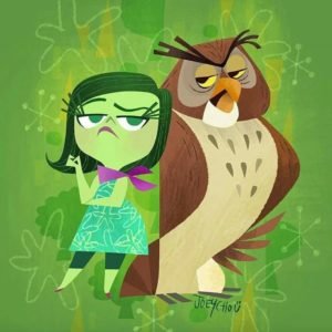 Desagrado tiene el cabello de color verde y es corto. Tiene un vestido de color verde claro con flores blancas con celeste. Lleva pantalon corto verde oscuro y zapatos de color rosa. También tiene una chalina de color rosa. Su piel es verde.