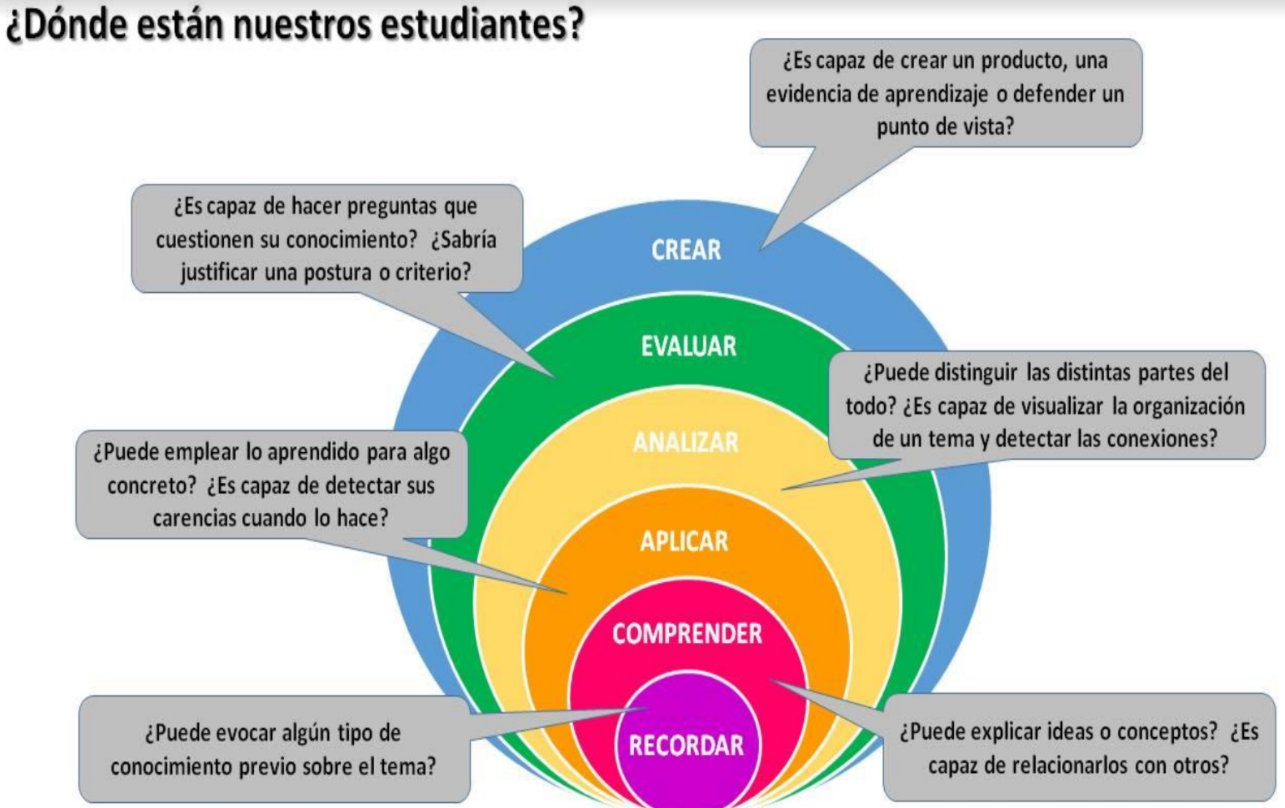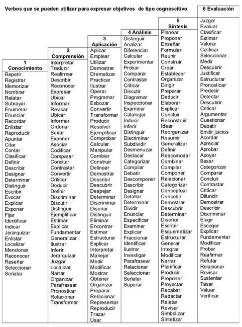 (1) Taxonomía de Bloom: qué es y cómo aplicarla en el aula. https://www.educaciontrespuntocero.com/recursos/taxonomia-de-bloom/ Con acceso 27/4/2023.