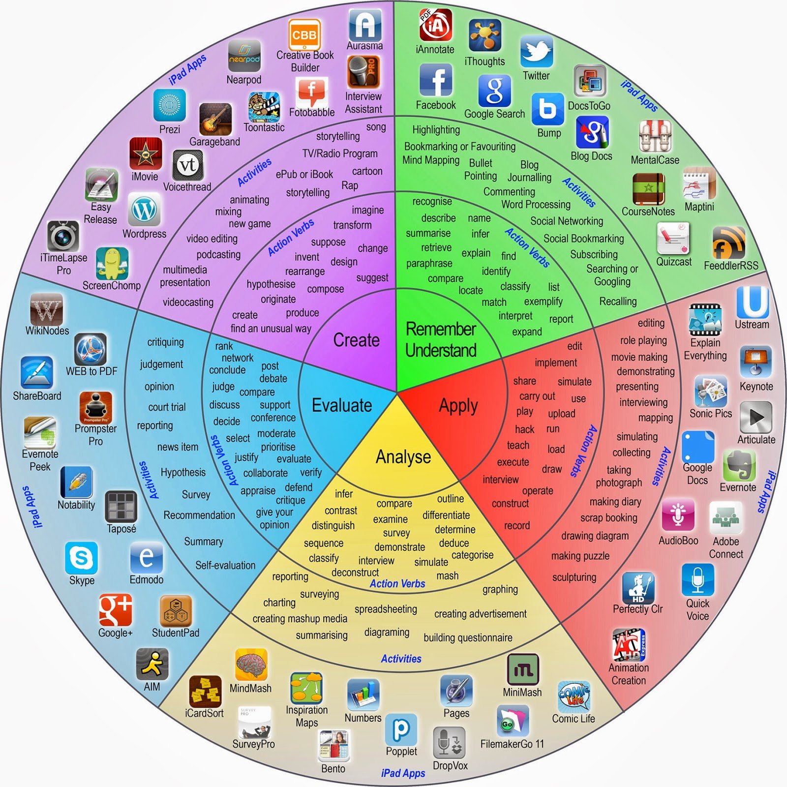 Actualmente debemos llevarlo al nuevo terreno tecnológico y por eso os propongo la siguiente rueda donde encontraréis una app apta para desarrollar cada una de estas fases.