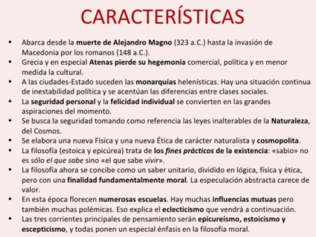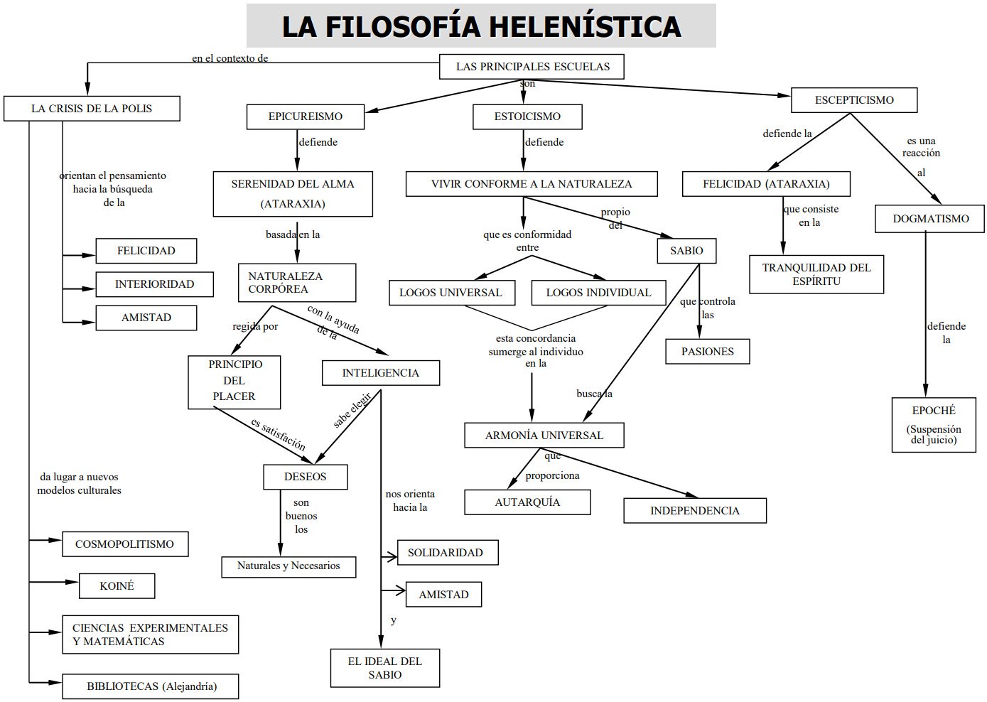 La filosofía helenística se desarrolló en la Antigua Grecia y abarca un período desde la muerteNo es una enfermedad sino un estado. Sucede cuando cesan las funciones vitales de mi cuerpo tales como latidos del corazón, respiración, actividades cerebrales: mi cuerpo ya no p More de Alejandro MagnoPara la historia de la civilización antigua las hazañas de Alejandro Magno supusieron un torbellino de tales proporciones que aún hoy se puede hablar sin paliativos de un antes en el 323 a.C. hasta la invasión de Macedonia por los romanos en el 148 a.C. Durante este tiempoSegún el desarrollo de la definición en Wikipedia, el tiempo es la magnitud física con la que medimos la duración o separación de acontecimientos sujetos a cambio, de los sist More, las ciudades griegas perdieron su soberanía, y AtenasEn la historia de la filosofía griega se llama a veces período ateniense o también ático al que abarcó desde mediados del siglo ν hasta fines del siglo IV antes de J. C. En t dejó de serAtributo filosófico griego que se le adjudica a una entidad capaz de definirse a sí misma frente a un medio capaz. Se escribe con s Ser es el más general de los términos. Con l More el centro político, comercial y culturalRedes cerradas de conversaciones, y las conversaciones ocurren como modos de vivir juntos en el entrelazamiento del lenguajear y el emocionear. Todas las actividades humanas ocurre More de la Grecia antigua. Las monarquías helenísticas surgieron en medio de la inestabilidad política y las crisis sociales, y en ese contexto, se desarrolló una corriente filosófica que buscaba respuestas a preguntas fundamentales sobre la felicidad y cómo alcanzarla12.