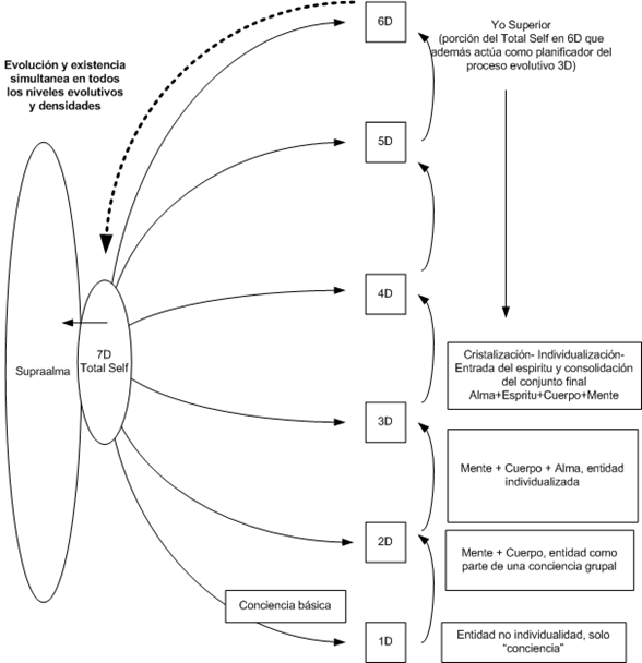 En ese proceso de superaciónVencimiento de un obstáculo o dificultad o mejora que haya tenido lugar en la actividad que cada persona desarrolla, esto en cuanto a lo profesional y metiéndonos más en el plano personal, la superación, también, es la mejora que una persona puede experimentar en sus cualidades personales. Como se puede vislumbrar a través de las definiciones, la superación es una parte de la vida interna de un ser humano que tiene que ver con aquellas situaciones o cuestiones que este vaya sorteando, para bien claro está, en lo que respecta a sus aspiraciones, o las metas que se haya propuesto en la vida. Muchas veces se entiende o se concibe a las cosas materiales como la superación a la cual puede llegar una persona; sin embargo, los que crean esto incurren en un error de interpretación, ya que las buenas rachas económicas, que permiten que se cambie de auto por un modelo un poco mejor, de casa, por una más grande, sólo se deberán a las buenas estrategias o los planes que una persona haya trazado en su negocio y... constante, los seres humanos ascendemos por las dimensiones vibratorias experimentando distintos niveles de conscienciaLas personas somos algo más que células, músculos, huesos y una piel que nos envuelve. Tenemos consciencia y conciencia, dos dimensiones que nos dotan de humanidad. Saber diferenciar ambos conceptos nos ayudará a comprendernos mucho mejor. Comencemos por lo que tienen en común: ambos términos derivan de la misma raíz etimológica: el vocablo latín conscientĭa. De allí, por ejemplo, que compartan el mismo adjetivo: consciente (que no admite la grafía conciente). El biólogo molecular y premio Nobel Francis Crick, solía decir que, aunque sea necesario saber diferenciar una dimensión de la otra, en realidad siempre nos quedaremos cortos a la hora de intentar definir cada una de ellas, ya que son entidades treméndamente complejas, en especial: la consciencia, filosófica y neurocientíficamente hablando. Comencemos por la Consciencia Sustantivo femenino, es la propiedad de reconocernos a nosotros mismos y lo que nos rodea, para relacionarnos con ella, reflexionando así sobre ello. El acto psíquico por medio del cual el individuo se reconoce a sí mismo en el mundo. Consciencia es algo más que estar despiertos, que tener los ojos abiertos y sentirnos parte de esa realidad.... Este holograma que forman los niveles de conciencia para entender el universo comenzó con planteamientos de David BohmDavid Joseph Bohm (20 de diciembre de 1917 - 27 de octubre de 1992) fue un físico teórico estadounidense-británico, conocido por sus contribuciones a la física cuántica, la filosofía y la neuropsicología. Nació en Wilkes-Barre, Pensilvania, en una familia judía. Estudió en el Colegio del Estado de Pensilvania y luego en el Instituto Tecnológico de California (Caltech) y la Universidad de California en Berkeley, donde obtuvo su doctorado bajo la supervisión de Robert Oppenheimer. Durante la Segunda Guerra Mundial, Bohm trabajó en el Proyecto Manhattan, aunque sus simpatías políticas de izquierda le causaron problemas con el gobierno de los Estados Unidos, lo que eventualmente lo llevó a mudarse a Brasil y luego a Israel y el Reino Unido. En 1951, publicó su influyente libro Teoría Cuántica, pero pronto se desilusionó con la interpretación ortodoxa de la mecánica cuántica y desarrolló su propia teoría de variables ocultas, conocida como la interpretación de Bohm o la teoría de De Broglie-Bohm. Bohm también es conocido por su trabajo en la teoría del orden implicado, que propone que el universo tiene un orden subyacente más profundo y..., Stanislav Groff y Gregory BatesonNació en el Reino Unido, 9 de mayo de 1904 - San Francisco, Estados Unidos, 4 de julio de 1980, antropólogo, científico social, lingüista y cibernético cuyo trabajo se interrelaciona con muchos otros campos intelectuales. Algunos de sus escritos más notables son encontrados en sus libros: Pasos hacia una ecología de la mente, 1972; Espíritu y naturaleza, 1979; El temor de los ángeles: epistemología de lo sagrado, 1987, publicado póstumamente y coescrito por su hija Mary Catherine Bateson. Hijo del distinguido genetista William Bateson. Entre 1917 y 1921, estudió Zoología y, posteriormente, Biología en el St. John's College de Cambridge; paralelamente realizó sus primeros trabajos de campo en Nueva Guinea, que prosiguió más tarde en Bali, con su, en ese entonces, esposa Margaret Mead, con quien publicó "Carácter balinense. Un análisis fotográfico" en 1942, un libro en el que se enfatiza el valor del soporte "físico" (fotografías, grabaciones, etc.) como instrumento para el quehacer analítico del investigador. En 1939 se trasladó a Estados Unidos, donde continuó viviendo el resto de su vida. En 1956 se hizo ciudadano estadounidense. Entre 1946..., entre otros buscando comprender como se relaciona la mente y la conciencia del ser humano.