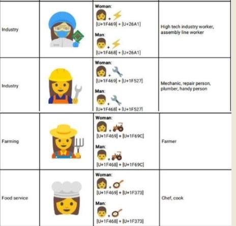 «Nuestra propuesta es crear un nuevo conjunto de ’emojis’ que represente a una amplia gama de profesiones para las mujeres y los hombresHistóricamente es definido como "un Ser bio-psico-social", con una serie de necesidades que requiere satisfacer para lograr la realización en la vida; según Maslow las necesidades básicas que el hombre debe satisfacer son cinco, a saber: 1-. Necesidades fisiológicas. Comprenden hambre, sed, vivienda, sexo y otras necesidades corporales. 2-. Necesidades de seguridad. Incluye seguridad y protección contra daño físico y emocional. 3-. Necesidad de amor. Abarca afecto, pertenencia, aceptación y amistad. 4-. Necesidad de estima. Incluye factores internos de estimación como respeto de sí mismo, autonomía y logro, y comprende también factores de estima como estatus, reconocimiento y atención. 5-. Necesidad de autorrealización. Está representada por el impulso de llegar a ser lo que puede ser, comprende crecimiento, realización del propio potencial y la autorrealización. Estas necesidades no son siempre satisfechas de igual modo en todos los individuos, pero indiscutiblemente están presentes en todo ser humano. La satisfacción de la mayoría de estas necesidades depende exclusivamente de agentes externos, por lo que supone en el hombre el establecimiento de relaciones de tipo social con el medio que lo rodea, y... con el objetivoFin al que se desea llegar o la meta que se pretende lograr. Es lo que impulsa a la persona a tomar decisiones o a perseguir sus aspiraciones. Aunque se usa como sinónimo de destino, fin, meta con conceptos muy diferentes. Comenzando por el hecho de que objetivo es táctico, meta es estratégico. Para la filosofía, objetivo es todo aquello que existe fuera del individuo, que tiene existencia real y concreta. Por otro lado, objetivo es también como se denomina el punto de mira de un arma o el blanco al que se apunta o refiere a alguien que se expresa sin que su manera de pensar o sentir influyan en sus ideas u opiniones. Es una persona imparcial o desapasionada. Por ejemplo: “Jorge trató de ser objetivo en sus comentarios”. Objetivos de Investigación Se conoce como objetivo de investigación al conjunto de fines o metas que se propone alcanzar un investigador en un trabajo, proyecto o estudio. Por lo general, los objetivos de investigación están alineados con el campo de conocimiento específico en que está inscrito un trabajo, y... de destacar la diversidad de las carreras de las féminas y el empoderamientoEmpowerment significa potenciación o empoderamiento que es el hecho de delegar poder y autoridad a los subordinados y de conferirles el sentimiento de que son dueños de su propio trabajo. En inglés "empowerment" y sus derivados se utilizan en diversas acepciones y contextos, pero en español la palabra se encuentra en pugna con una serie de expresiones que se aproximan sin lograr la plenitud del sustantivo. Se homologan "empowerment" con "potenciación" y "to empower" con "potenciar", mientras que caen en desuso expresiones más antiguas como "facultar" y "habilitar". Otras traducciones relacionadas: To empower: dar o conceder poder; facultar, habilitar, capacitar, autorizar, dar poder de, potenciar, permitir, empoderar, otorgar el derecho (o la facultad) de, etc.; Conferir poderes; (en el sentido comercial o legal) apoderar, comisionar. Empowerment: potenciación, empoderamiento, apoderamiento. Empowered: facultado, potenciado, fortalecido. Powered: potenciado. Empowerment es una herramienta de la calidad total que en los modelos de mejora continua y reingeniería, así como en las empresas ampliadas provee de elementos para fortalecer los procesos que llevan a las empresas a su desarrollo. El Empowerment se convierte en la herramienta... de las niñas», aseguran Rachel Been, Nicole Bleuel, Agustin Fonts y Mark Davis, de Google, en su escrito dirigido al Consorcio.