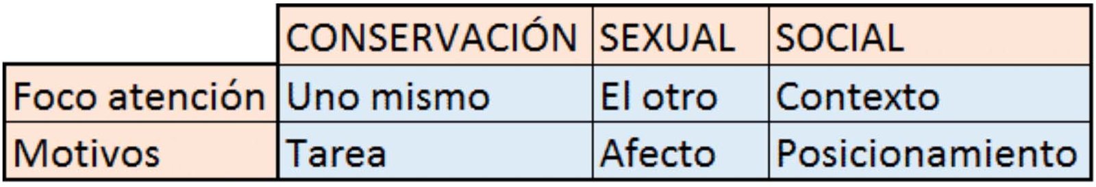 Un subtipo podría traducirse como: “Aquello que es lo más importanteEste atributo se asocia a ocupar un rol de relevancia social, a través del cual se supone que esa persona le importa a muchos o a todos. Eso surge de que esas personas poseen recursos o atribuciones que pueden afectar mi vida para bien o... para mí en la vida”. Estos instintos o subtipos son el conservacional, social y sexual.