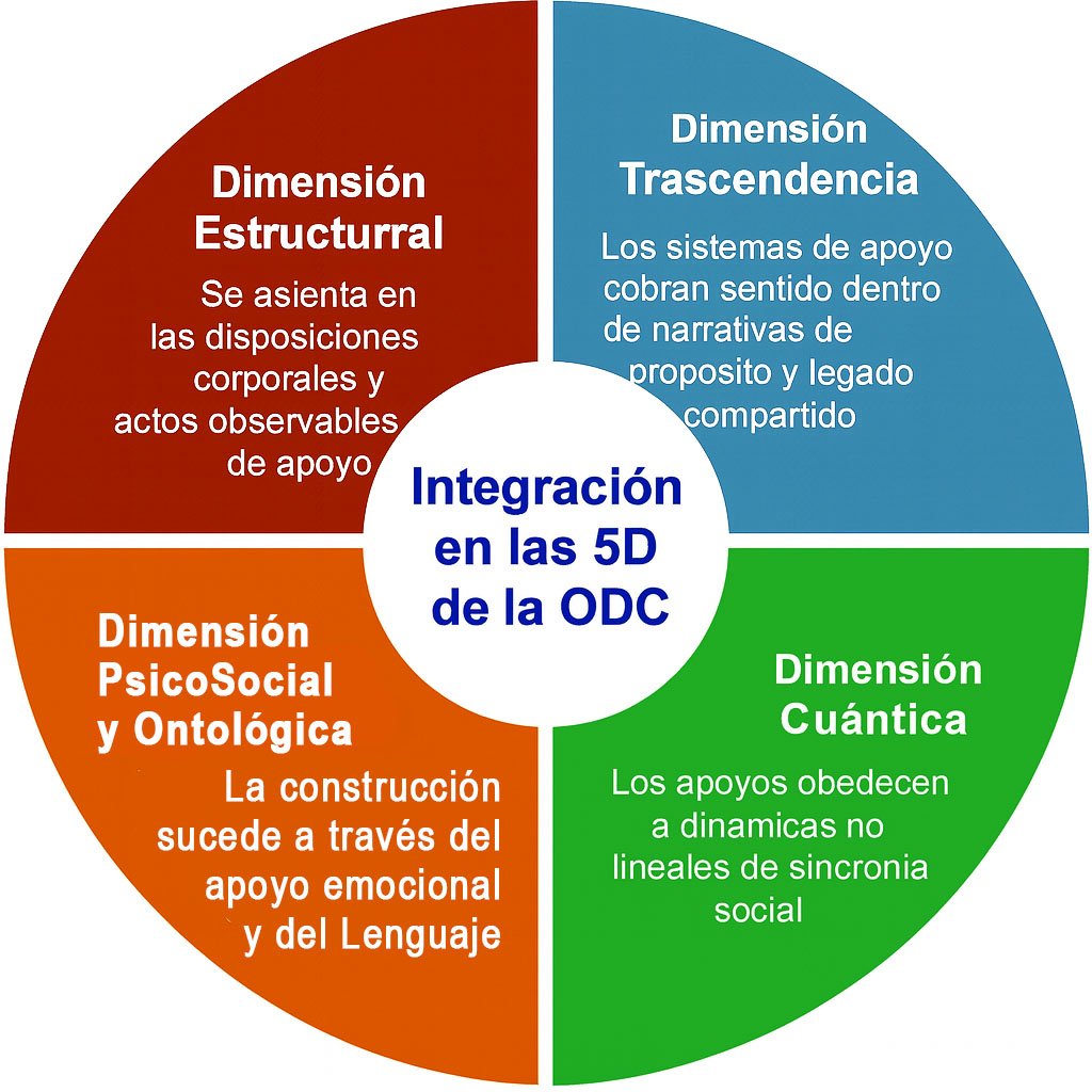 Dimensión Cuántica: los apoyos obedecen a dinámicasCuando hablamos de dinámicas, áreas en las que se desarrolla la vida, en Ontología del Lenguaje nos referimos algunos términos como estos: Corporalidad, Emociones y Lingüístico (cómo hablo, converso). Sexualidad, Familia y/o Pareja. Ámbito Laboral y del Trabajo. Proceso de Educación Contínua. Entretenimiento. Servicio a la comunidad. Economía y Finanzas, Espiritualidad... etc “El Coaching Ontológico está orientado al ser humano y es en este campo donde se desarrollan los procesos humanos y es posible hacer coaching ontológico. Es en este dominio humano donde toma sentido el dominio técnico y donde radica la ventaja competitiva. La diferencia fundamental radica en el entrenamiento en las competencias que constituyen el dominio humano, en la toma de conciencia, tanto individual como colectiva, de quiénes están haciendo la empresa. Para ser competente en este dominio humano son necesarias habilidades para tomar conciencia y estas destrezas constituyen las competencias conversacionales.” Jorge Pinotti. En mi tránsito por el aprendizaje de Dianética, aprendí que Ronald Hubbard, refiere a dinámicas diciendo: La orden básica a que toda vida obedece es: “¡Sobrevive!”, comprendiendo las dinámicas como el ímpetu, el empuje... no lineales de sincronía social. Las estructuras de soporte pueden generar sinergias impredecibles (entretejimiento relacional), por lo que los ejercicios de alineación gradual de compromisos (p.ej. pasos pequeños crecientes) buscan «re-sincronizar» a las personas involucradas.