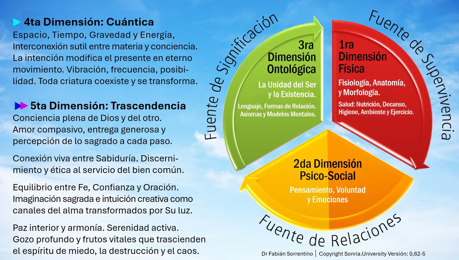 Un desarrollo del Dr. Fabián SorrentinoDirector de la Fundación SONRIA y el Portal Educativo: SONRIA.UNIVERSITY Visitar Perfil en Linkedin. El Doctor Fabian Sorrentino es Master y MentorCoach, especialista en el desarrollo de la creatividad y la conciencia humana. Por más de 30 años se ha dedicado a la Innovación e Identidad corporativa ofreciendo servicios de comunicación internacional. Residió en Argentina, Brasil y los EE.UU; alternando con viajes entre 21 países. Siendo muy joven fundó su empresa integrando comunicación y educación. Asumió campañas para los Rolling Stones, Eric Clapton, David Bowie, BibiKing, La Scala de Milán, Luis Miguel, (del cual formo el Club de Fans), Mercedes Sosa, Charlie García y Fito Páez. Y más de 100 películas: (Rambo, Rocky, Orwell 1984, Pink Floyd the Wall, Metrópolis, La Naranja Mecánica, Yo te saludo María, Gandhi, 2001 Odisea en el Espacio, Saga de StarWars, Relámpago Azul...) . En el 95 comienza su carrera como profesor universitario, en las áreas de Publicidad y Diseño, en las Universidades John Fitgerald Kennedy, a la que le siguen, la Universidad de Belgrano, la Universidad Católica de Salta, el Instituto Británico de Cultura... para conectar con las 9 Maestrías de la IAC desde la Ontología de la ConcienciaExplorar la ontología de la conciencia como propuesta filosófica para ilustrar el escenario que viene, implica adentrarse en un campo interdisciplinar que abarca desde la filosofía y las múltiples ciencias hasta un enfoque teológico-tecnológico, capaz de integrar la naturaleza del ser y la esencia de la conciencia. Encontrándonos con nuevos conceptos tales como: “Singularidad Espiritual” que sugiere una convergencia de lo humano y lo divino en un futuro de omnipresencia tecnológica; y “Mente Cósmica” explorando cómo la tecnología cuántica nos conecta con una conciencia más amplia, a la vez que reconoce la necesidad de una relación con "Un Creador" que nos guíe, No solo como lazarillo en plena "era de la controversia", sino como una postura valida para transitar los siete principios básicos del pensamiento complejo en el presente e incluso adelantándose a los escenarios de los próximas décadas, en las que conviviremos con «bots de inteligencia artificial» entre nosotros. índice de la Tesis del Dr Fabián Sorrentino sobre la Ontología de la Conciencia (ODC). . Introducción a la Ontología de la Conciencia La ontología de la conciencia se centra... y el Modelo MET. Para leer el Colofón con el Marco Teórico completo bajar este PDF