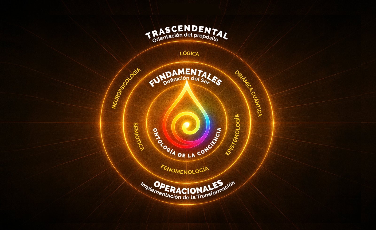 Este manifiesto no pretende competirLa palabra competencia viene del latín competentia (cualidad del que luchar para conseguir un premio), compuesta con: El prefijo con- (entero, junto, por completo), como en consolidar y consumir. Este prefijo se relaciona con una raíz indoeuropea *kom- (junto, cerca de), que nos dio koiné,... con disciplinas existentes ni reemplazar marcos consolidados. Su propósitoDel latín propositum, el propósito es la intención o el ánimo de hacer o dejar de hacer algo. En el habla cotidiana, se suele utilizar en la expresión a propósito como sinónimo del término adrede, para señalar una acción deliberada, generalmente perjudicial o molesta para... es ordenar el terreno donde esas disciplinas operan. La OntologíaLa ontología es la disciplina que estudia el ser en cuanto ser. La misma se origina en la historia de la filosofía y surge de la necesidad de dar explicaciones racionales, no mitológicas, a los fenómenos del mundo físico. Recordemos que el carácter universal de... de la Conciencia no es una técnica, una metodología ni una corriente terapéutica. Es un marco ontológicoUn marco ontológico es un sistema formal para representar conocimiento, identificando conceptos, sus propiedades y las relaciones entre ellos. Sirve como un modelo de datos para estructurar información de manera coherente y reutilizable, permitiendo que las máquinas entiendan y procesen los datos de forma más inteligente. En filosofía,... que permite distinguir niveles, procesos y límites que atraviesan todosDel latín totus y hace referencia a algo que se toma o se comprende enteramente. Por ejemplo: si en un salón hay ocho personas de sexo masculino y ninguna mujer, puede decirse que allí todos los asistentes son hombres. En un marco determinado, la noción... los dominios humanos.