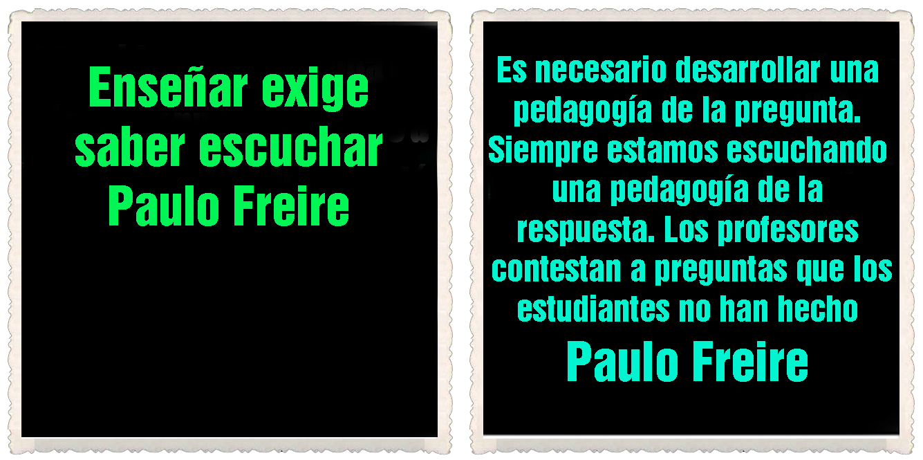 «…No hay cambioDenota la transición que ocurre de un estado a otro, por ejemplo: el concepto de cambio de estado de la materia en la física (sólido, líquido y gaseoso) o de las personas en su estado civil (soltero, casado, divorciado o viudo); o las crisis, o revoluciones en cualquier campo de los estudiados por las ciencias sociales, principalmente la historia, que puede definirse como ciencia del cambio. No es más fuerte el que sobrevive ni el más inteligente, sino el más capaz de adaptarse a los cambios: Charles Darwin Cambio y transformación son dos conceptos bien diferentes y es común confundirlos. Etimológicamente cambio, proviene del término latino “cambium”. Son las transformaciones físicas, químicas, biológicas, sociales, políticas, económicas o psíquicas que experimentan las cosas y los seres vivos, considerados en forma individual o grupal. Los cambios pueden ser lentos o graduales, como sucede con el crecimiento de una persona; pero también bruscos. Los grandes cambios sociales, políticos, económicos o tecnológicos reciben el nombre de revoluciones, como la Revolución Industrial (de tipo económica) o la Revolución francesa (fundamentalmente política). El filósofo griego Heráclito... sin sueñoImportante experiencia psíquica que se produce mientras dormimos. Interrupción fisiológica espontánea y periódica de la actividad de la conciencia, acompañada por cambios funcionales en algunos órganos. El sueño es un estado fisiológico de autorregulación y reposo uniforme de un organismo. En contraposición con el estado de vigilia —cuando el ser está despierto—, el sueño se caracteriza por los bajos niveles de actividad fisiológica (presión sanguínea, respiración) y por una respuesta menor ante estímulos externos. El vocablo «sueño» (del latín somnus, que se conserva en los cultismos somnífero, somnoliento y sonámbulo) designa tanto el acto de dormir como el deseo de hacerlo (tener sueño). Metafóricamente, se afirma que una parte del cuerpo se le ha dormido a uno, cuando se pierde o reduce pasajeramente la sensibilidad en la misma (parestesia) Etapas del sueño Los niños pequeños deben dormir a intervalos varias veces en el día. En el adulto, el sueño nocturno de unas 8 horas se organiza en 4-5 ciclos de unos 90-120 minutos, durante los cuales se pasa de la vigilia al sueño ligero (estadio o fase I), de allí..., como no hay sueño sin esperanza». Paulo FreirePaulo Reglus Neves Freire (Recife, Pernambuco, 19 de septiembre de 1921-São Paulo, 2 de mayo de 1997) fue un educador y experto en temas de educación, de origen brasileño. Uno de los más influyentes teóricos de la educación del siglo XX. Hijo de una familia de clase media pobre de Recife, Brasil, nació el 19 de septiembre de 1921. Freire conoció la pobreza y el hambre durante la Gran Depresión de 1929, una experiencia que formaría sus preocupaciones por los pobres y que le ayudaría a forjar su perspectiva educativa. Freire ingresó en la Universidad de Recife en 1943, en la Facultad de Derecho, donde estudió filosofía y psicología del lenguaje al mismo tiempo. Se incorporó en la burocracia estatal, pero nunca practicó la abogacía, sino que prefirió dar clases de portugués en secundaria. En 1944 se casó con Elza Maia Costa de Oliveira, que era profesora de primaria. Tuvieron cinco hijos y colaboraron por el resto de su vida. En 1946 Freire fue nombrado Director del Departamento de Educación y Cultura del Servicio Social en el Estado de Pernambuco,....