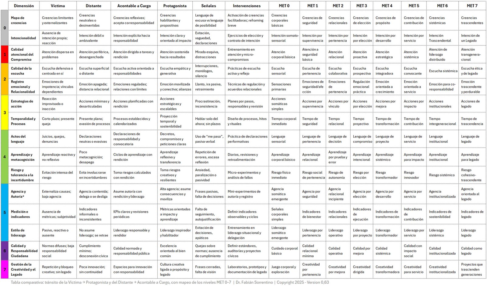 6 – MaestríaSe mueve con sentido de propósito y legado; trasciende la mera competencia.Percibir la coherencia entre lo que hace, lo que dice y lo que es.Afirmar su capacidad de inspirar y guiar a otros desde su propia maestría.Expandir alentándolo a crear impacto en comunidades, organizaciones o generaciones futuras.