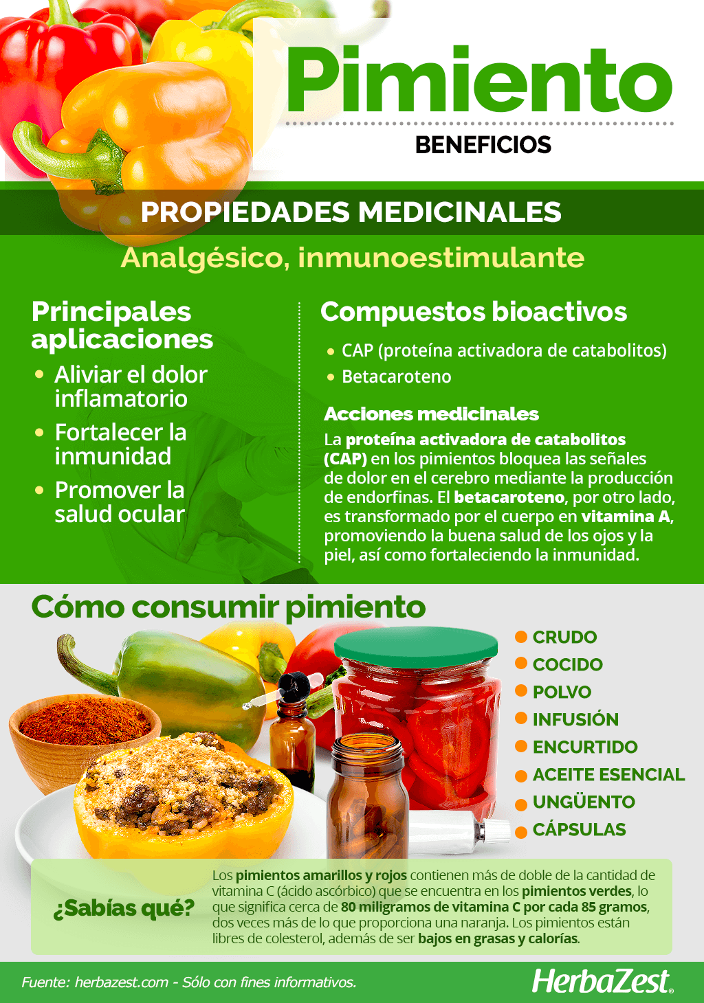 Por su alto contenidoAlgo que se contiene dentro de una cosa. Suele utilizarse para nombrar al producto que se encuentra en un envase o recipiente. Por ejemplo: “La botella es muy grande y vistosa, p en vitaminas y antioxidantes, el pimiento rojoEl color rojo es uno de los más antiguos, poderosos y universales de la historia de la humanidad. Desde la sangre hasta el fuego, desde el amor hasta la guerra, desde el arte hast More es un poderosoSinónimo de fuerza, capacidad, político o dominio (según la RAE). Nada más reductor que este camino para definirlo. La sociología lo atribuye a la capacidad de hacer o ser alg More alimento que combate el envejecimientoAl envejecer, sucede que mi cuerpo pierda su flexibilidad. Ando más difícilmente, mi destreza se deteriora. ¿Qué quiere decirme mi cuerpo? Es probable que sienta pesar por los More y varias enfermedades graves. Entre sus principales propiedades y nutrientes esenciales destacan las siguientes: