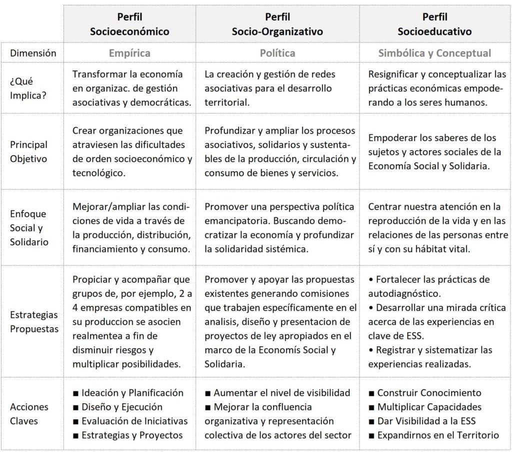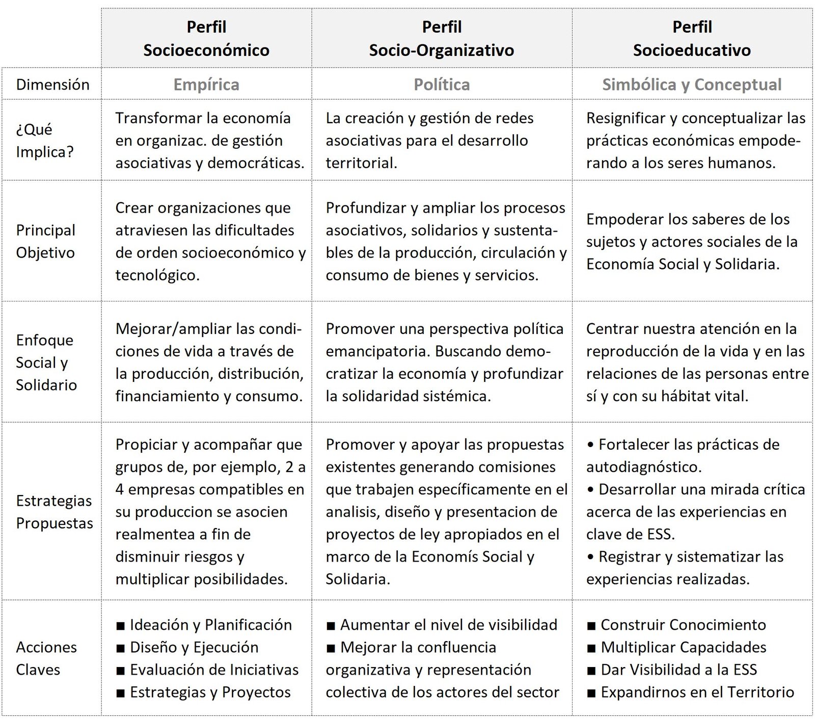 La profundidad de nuestra observación-acción se fortalece en la articulación entre las áreas temáticas, los ejes estratégicos y los perfiles profesionalizantes. Estos ejes nos invitan a pensar nuestras prácticas de forma estratégica y promueven el desarrollo del campo de la economía social y solidaria, tanto a nivel micro como meso y macro territorial. Construyendo vinculaciones institucionales, que sostengan, encuadren y tejan redes para el fortalecimiento de la ESS.