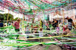 FS: El espacio, considerado como un hiperobjeto en términos de Timothy Morton, genera un contexto capaz de ser interpretado desde múltiples dimensiones. Los hiperobjetos tienen muchas características en común: son viscosos, involucran una temporalidad radicalmente distinta de las temporalidades a escala humana a las que estamos acostumbrados. Ocupan una fase espacial de alta dimensionalidad que los vuelve invisibles a los humanos durante ciertos períodos de tiempo. Los hiperobjetos tienen un impacto significativo en el espacio humano psíquico y social.en que los chicos pasan gran parte de su tiempo, con unos pocos adultos. Siendo así cabe preguntarnos… ¿que es lo que sucede para que en pleno siglo XXI nuestras escuelas se parezcan más a un regimiento que a un hogar?