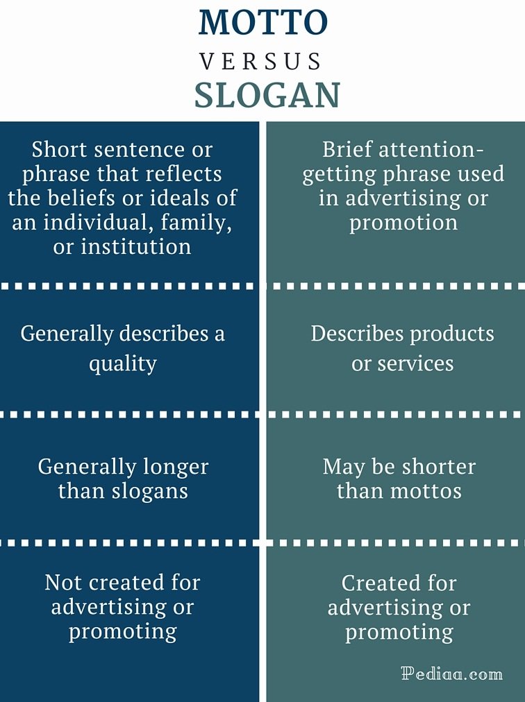Anteriormente se usaba el término slogan para cualquier frase publicitaria asociada con una marca o alguno de sus productos. Hoy se distingue entre tres conceptosSegún Pfänder los conceptos son los elementos últimos de todos los pensamientos. En esta caracterización del concepto va implícita, según la definición hecha del pensamiento More diferentes, a saber: Slogan, Tagline y Lema.